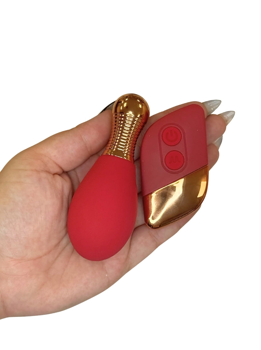 Not all saints wear halos—some hold remotes. Meet Inner-Saint, your divine little secret that proves being “good” can still feel oh-so-naughty. With its silky red body, elegant gold detailing, and compact teardrop shape, this beauty slips into your playtime with effortless grace.